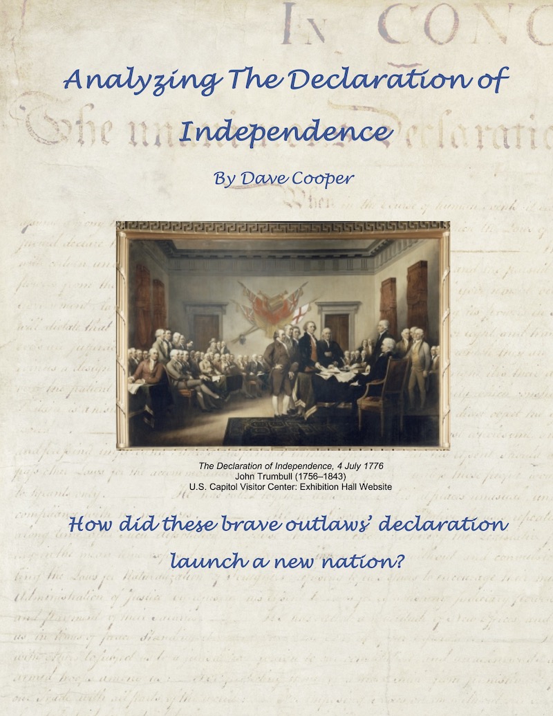 The middle level resource “Analyzing the U.S. Declaration of Independence” guides students through events leading to the writing of the declaration and provides tools to help them analyze its text– to reveal what Jefferson believed a government should do and the specific reasons why The United States was born.