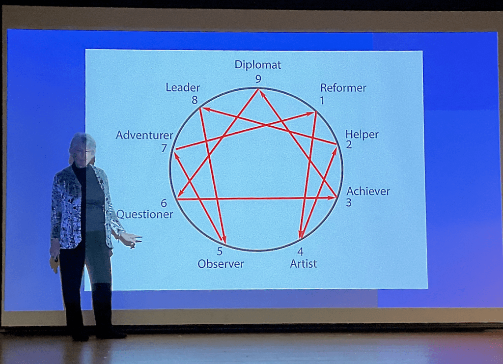 “Create Your Character’s Arc” by writer Susan Reiss seemed a natural follow-up to Camacho’s session. Reiss encouraged the use of enneagrams to build behaviorally believable characters and to map their personality changes through a story’s arc. Enneagrams classify personalities into nine types based upon fears and desires and can help writers match behaviors to personalities while showing a character’s evolution when subjected to stress (conflict).